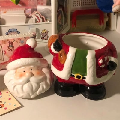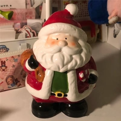 Contenitore per Babbo Natale, simpatico arredamento per la scrivania della casa vacanza, contenitore in ceramica