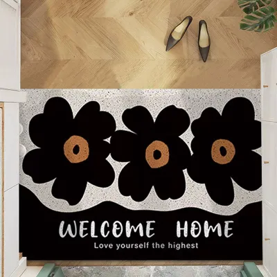 Zerbino rettangolare in PVC con margherita nera e kaki