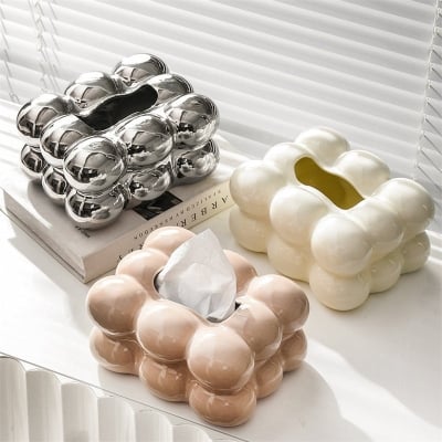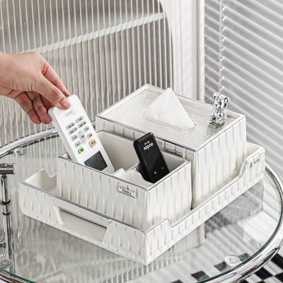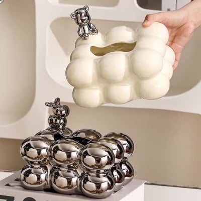 Set porta fazzoletti semplice con orsetto e resina bianca