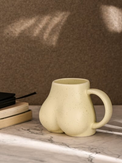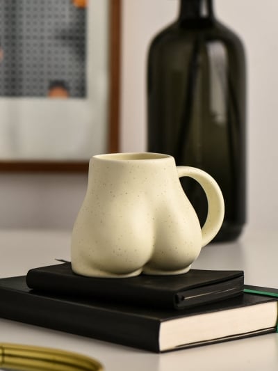 Divertente tazza in ceramica con fondo beige, tazza creativa a forma di culo