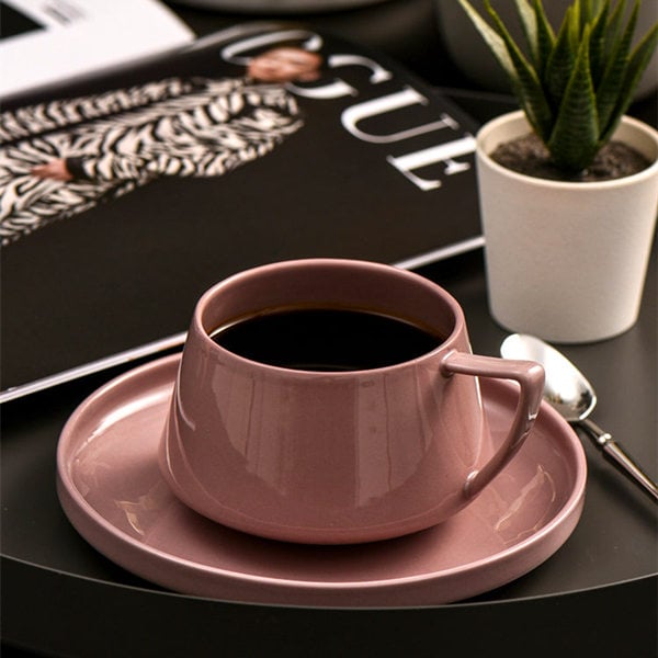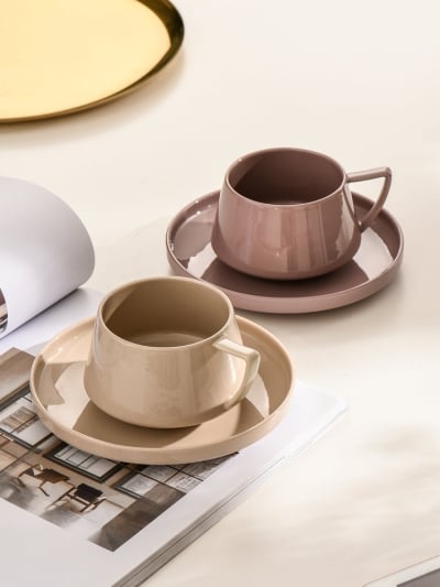 Tazza in ceramica semplice in stile nordico con piattino, tazza da tè e caffè in tinta unita