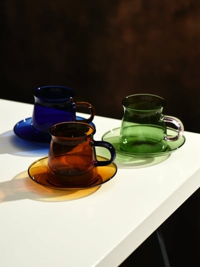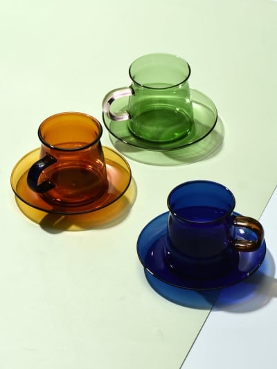 Tazza in vetro in stile nordico con piattino, tazza da tè e caffè