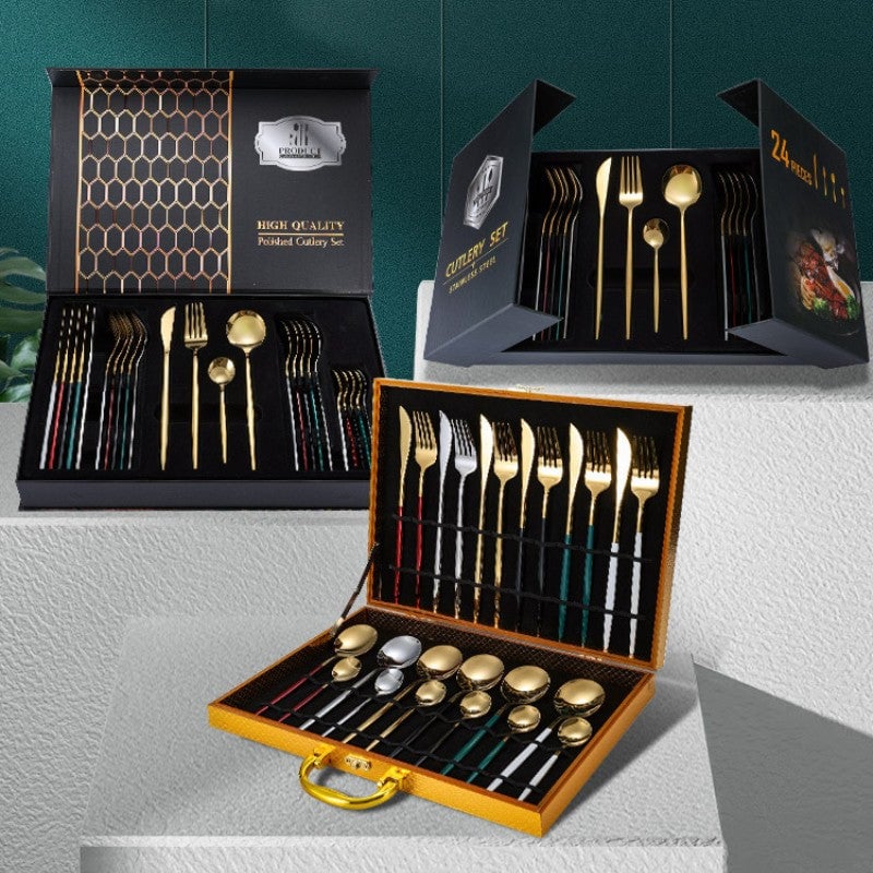 Set da 24 pezzi di stoviglie in acciaio inossidabile, coltello e forchetta